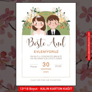 Kalın karton kağıttır.Diğerleri ile bizi karıştırmayın ! -Her adette baskı vardır. -Zarf Dahil Değildir.Zarf Fiyatı Baskısız 2.5 TL Baskılı fiyatı 3 TL'dir - Ortalama 2 iş gününde teslim - eve elden teslim Adana Davetiye basan yerler, Adana Davetiye , Adana davetiye fiyatları , Adana düğün davetiyesi , adana nişan davetiyesi